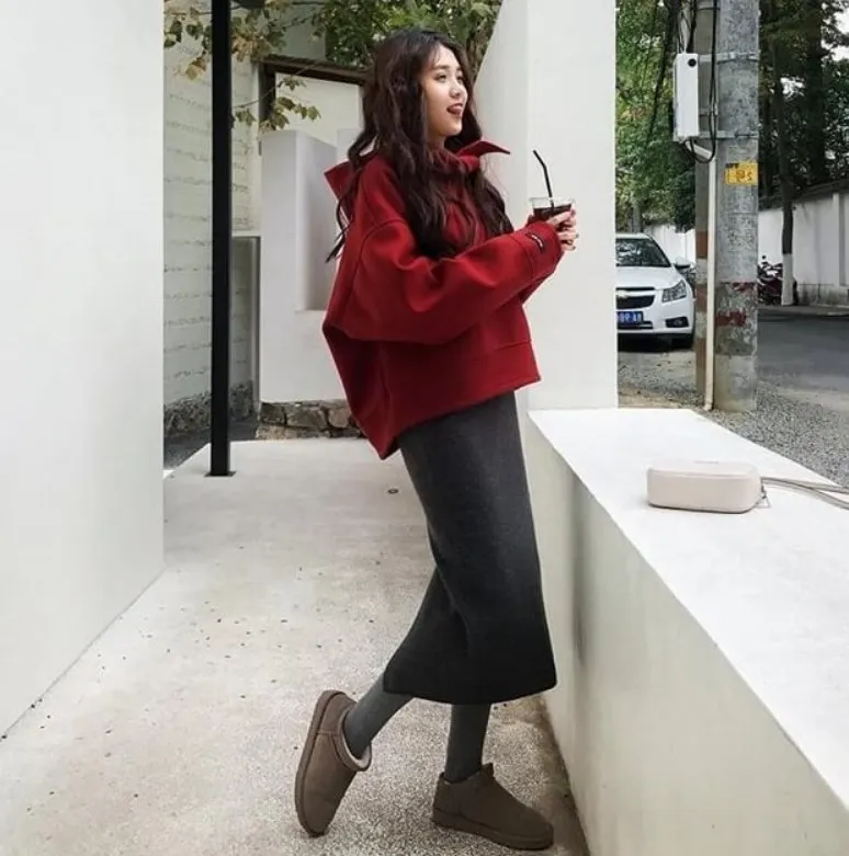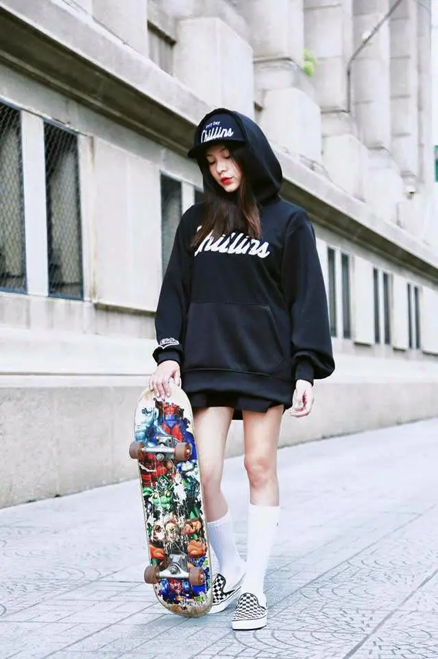 Sự kết hợp giữa hoodie và chân váy xếp ly mang đến phong cách “school girl” đầy cuốn hút. Hãy chọn chân váy ngắn hoặc vừa gối, kết hợp cùng sneaker trắng hoặc bốt cổ thấp. Outfit này đặc biệt hợp với các nàng yêu thích phong cách Hàn Quốc, dễ thương nhưng vẫn cá tính.