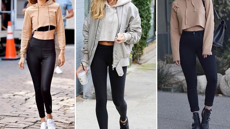 Phối hoodie với quần da là lựa chọn hoàn hảo cho những cô nàng yêu sự mạnh mẽ. Set đồ này phù hợp với tông đen hoặc xám, kết hợp thêm boots hoặc sneaker cao cổ. Hãy đeo thêm túi đeo chéo mini và vòng cổ kim loại để tăng độ “cool”.