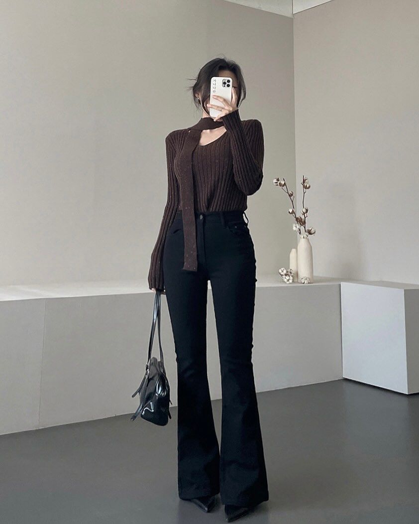 Xem thêm: Cách phối đồ với quần ống loe đen sành điệu.