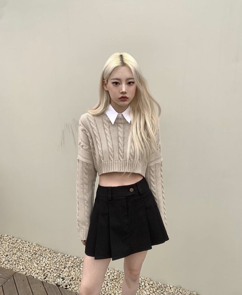 2. Áo len dáng croptop + Chân váy chữ A