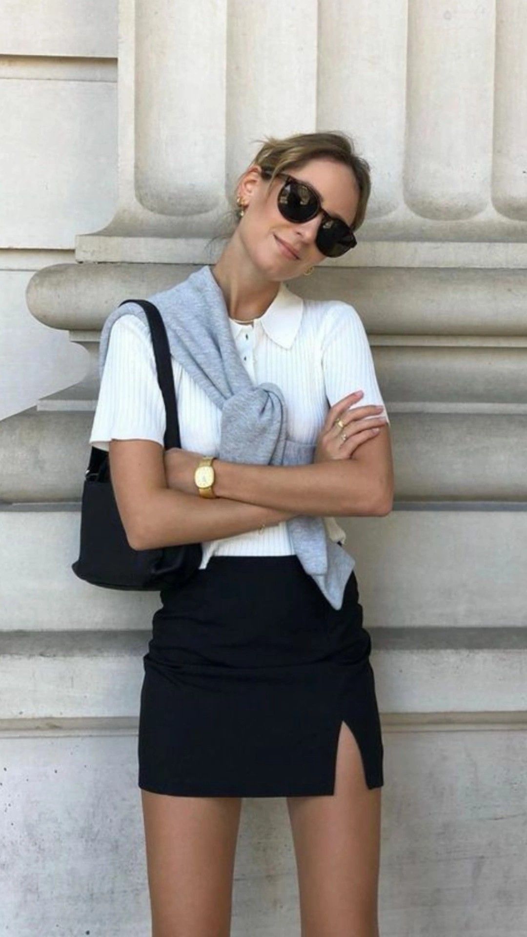 A: Hãy chọn chân váy chữ A, chân váy xếp ly hoặc váy tennis ngắn. Phối cùng polo ôm body hoặc polo croptop sẽ tạo vẻ năng động, trẻ trung và hiện đại.
