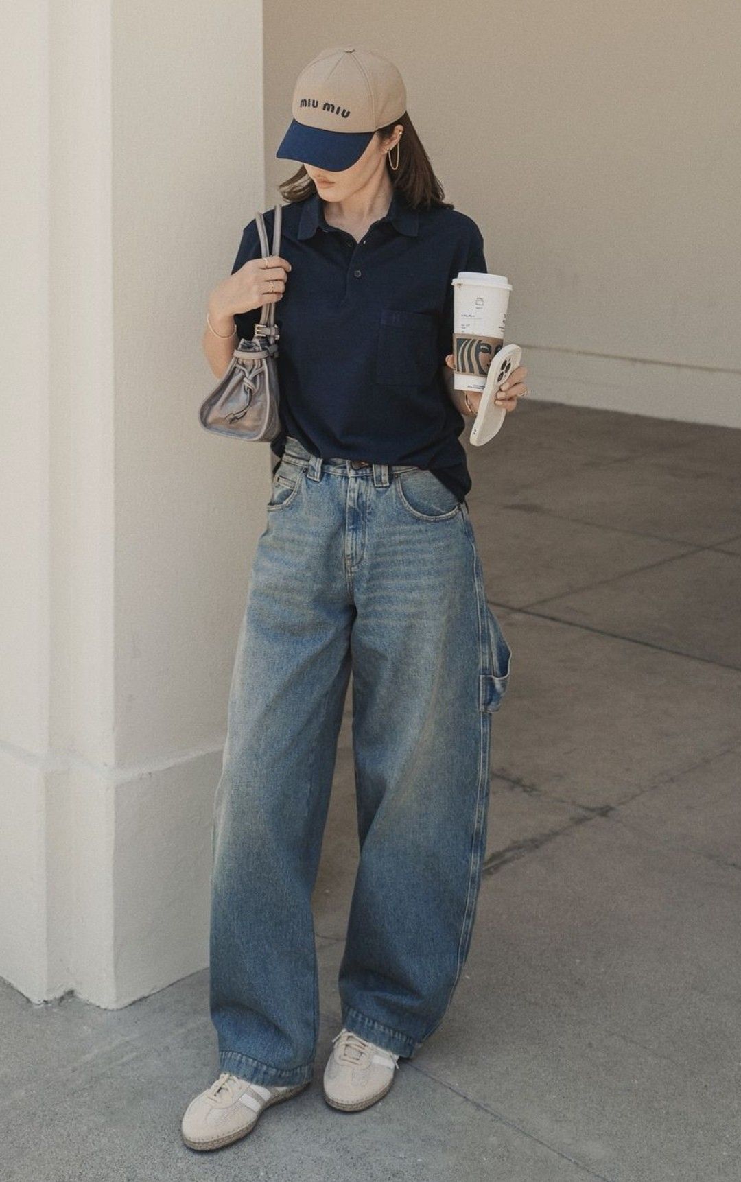 Với những ngày bạn cần di chuyển nhiều hoặc đơn giản chỉ muốn mặc thứ gì đó thật thoải mái, hãy thử áo polo oversize phối với quần jeans baggy.