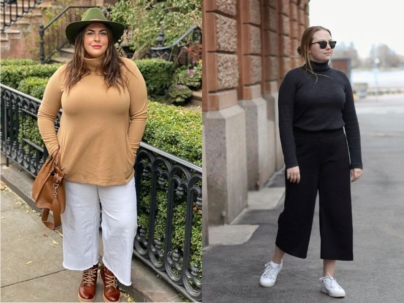Quần culottes với ống rộng vừa và độ dài lửng ngang bắp chân là “vị cứu tinh” cho người béo muốn che khuyết điểm phần đùi. Kiểu quần này mang lại sự năng động, trẻ trung, phù hợp cho cả công sở lẫn dạo phố.