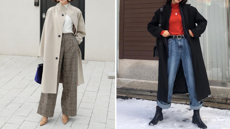 Áo khoác dạ thẳng giúp tạo đường dọc cơ thể, khiến người mặc trông cao hơn. Hãy để áo khoác mở để outfit bên trong được “lộ” ra một cách khéo léo.