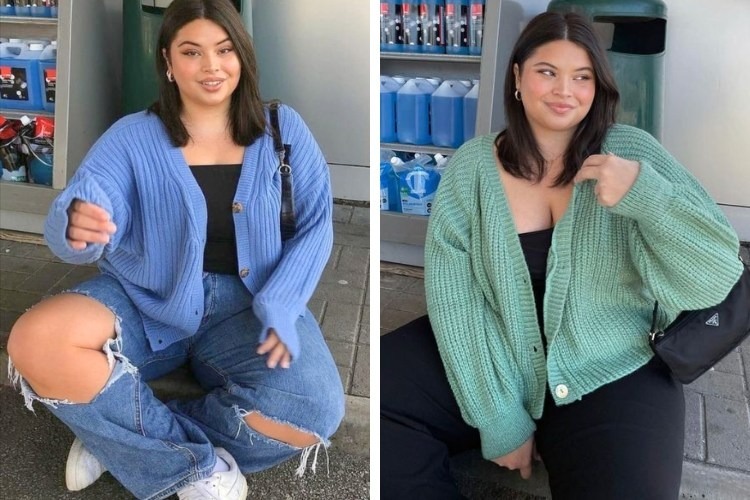 Áo cardigan khoác hờ giúp che khuyết điểm mà vẫn nhẹ nhàng. Bên trong có thể là áo tanktop hoặc áo thun ôm, đơn giản mà hiệu quả.