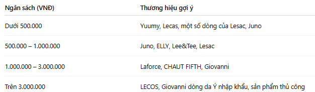 ✅ Lưu ý: Nếu bạn có ngân sách cao, nên đầu tư vào túi da thật – bền, thẩm mỹ cao và giữ giá trị lâu dài.