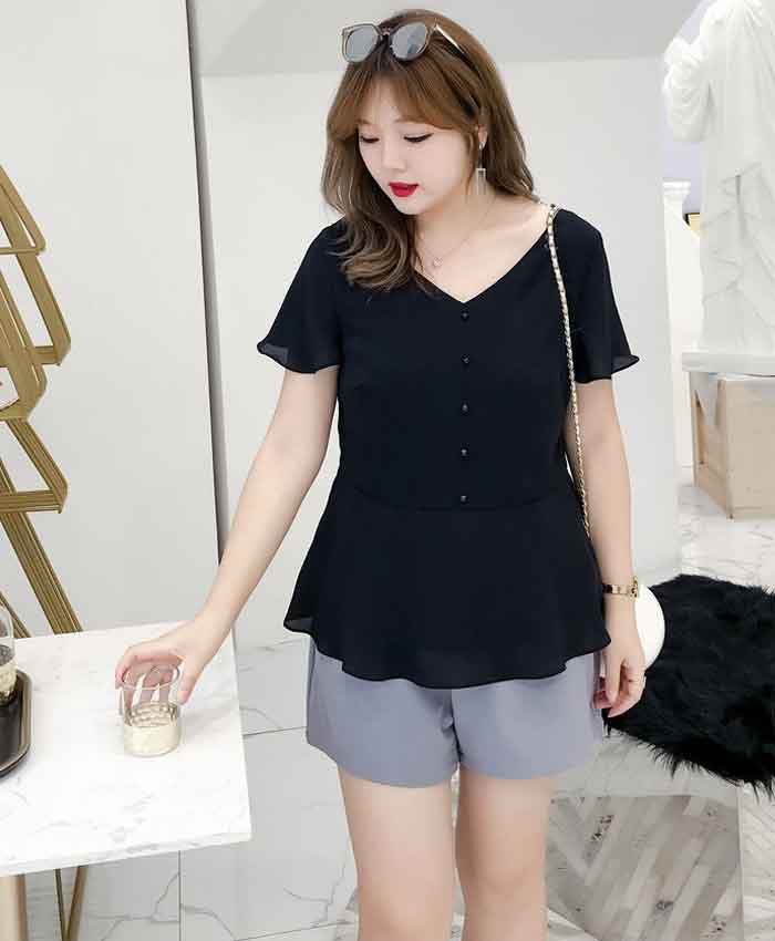 Một chiếc áo phông dáng rộng hoặc sơ mi oversize mix cùng quần short sẽ mang lại sự năng động, khỏe khoắn cho nàng béo. Quần short nên là kiểu cạp cao để “gọt” eo, trong khi áo rộng vừa đủ giúp che phần bụng mà không tạo cảm giác luộm thuộm.