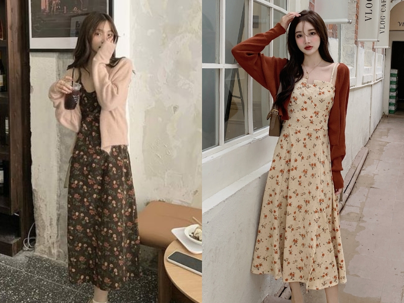 1. Áo cardigan phối cùng váy hai dây