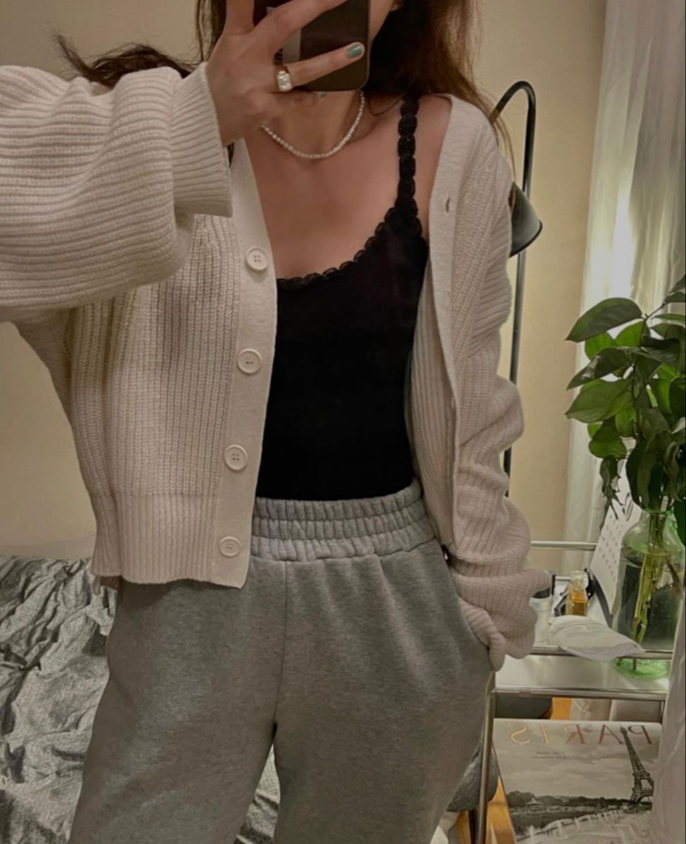 12. Cardigan mix áo crop top và quần jogger