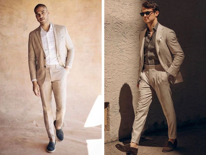 Phong cách smart-casual cho những buổi hẹn hay event nhẹ nhàng. Chọn blazer màu be, navy hoặc xám nhạt, kết hợp giày loafers, clutch da nam và kính mát để outfit thật “gọn gàng nhưng không gò bó”.