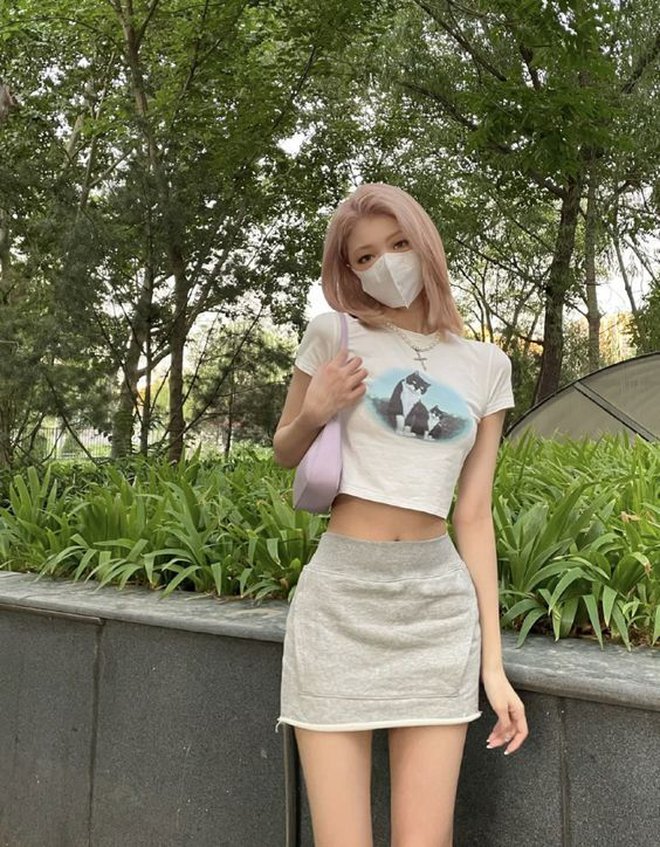 Áo croptop ôm gọn cơ thể kết hợp với quần ống rộng cạp cao là công thức chuẩn cho style Trung Quốc mùa hè.