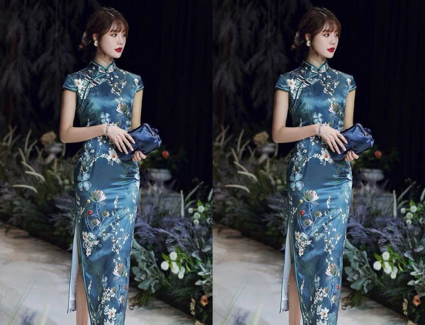 Sườn xám là biểu tượng của vẻ đẹp quyến rũ và sang trọng trong văn hóa Trung Hoa. Kết hợp cùng một đôi giày cao gót mũi nhọn tông màu nude hoặc đỏ để tăng chiều cao và tôn lên vóc dáng, thêm một chiếc clutch nữ da thật cùng đôi khuyên tai ngọc trai để trở nên nổi bật trong các buổi tiệc hoặc sự kiện quan trọng.