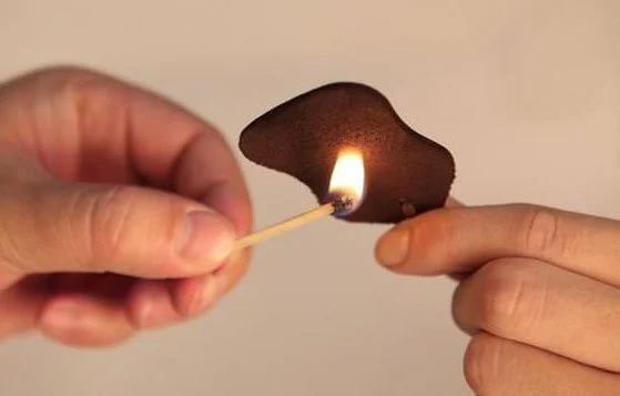 Nếu hơ lửa nhẹ, da thật sẽ cháy xém và có mùi khét như tóc cháy, trong khi da giả sẽ co lại, chảy nhựa và có mùi nhựa cháy.