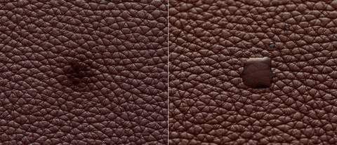 Hút nước và để lại vết ẩm tạm thời: bạn có thể đổ một vài giọt nước vào da, sau một vài phút chỗ nước đó sẽ bị lan rộng và thấm vào da thật vì da thật rất háu với độ ẩm và có nhiều lỗ chân lông trên da