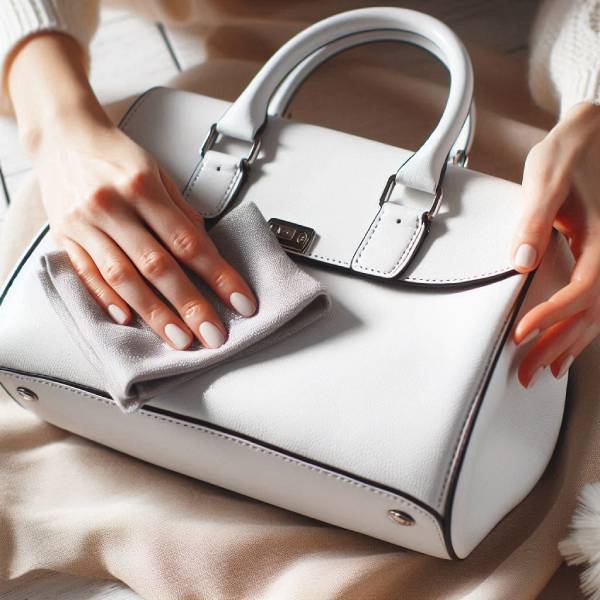 1. Sử dụng khăn mềm để lau bụi bẩn hàng ngày trên túi da trắng