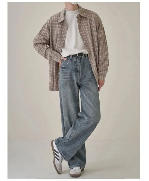 Quần jeans ống rộng + áo sơ mi