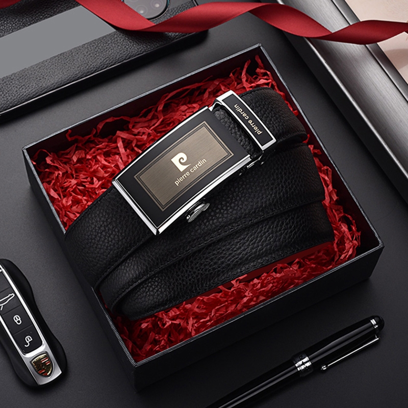 Pierre Cardin là thương hiệu nổi tiếng với các dòng thắt lưng nam da thật sang trọng, chủ yếu dành cho nam giới. Mặt khóa có thiết kế cổ điển, lịch sự, dễ kết hợp với trang phục công sở hoặc trang phục dự tiệc.