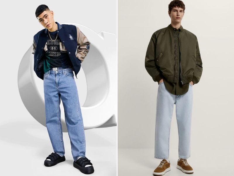 Bomber kết hợp quần baggy và giày thể thao tạo nên outfit đậm chất thời trang đường phố. Thêm phụ kiện như kính mát thời trang hoặc mũ bucket sẽ giúp tổng thể trở nên cá tính và khác biệt.