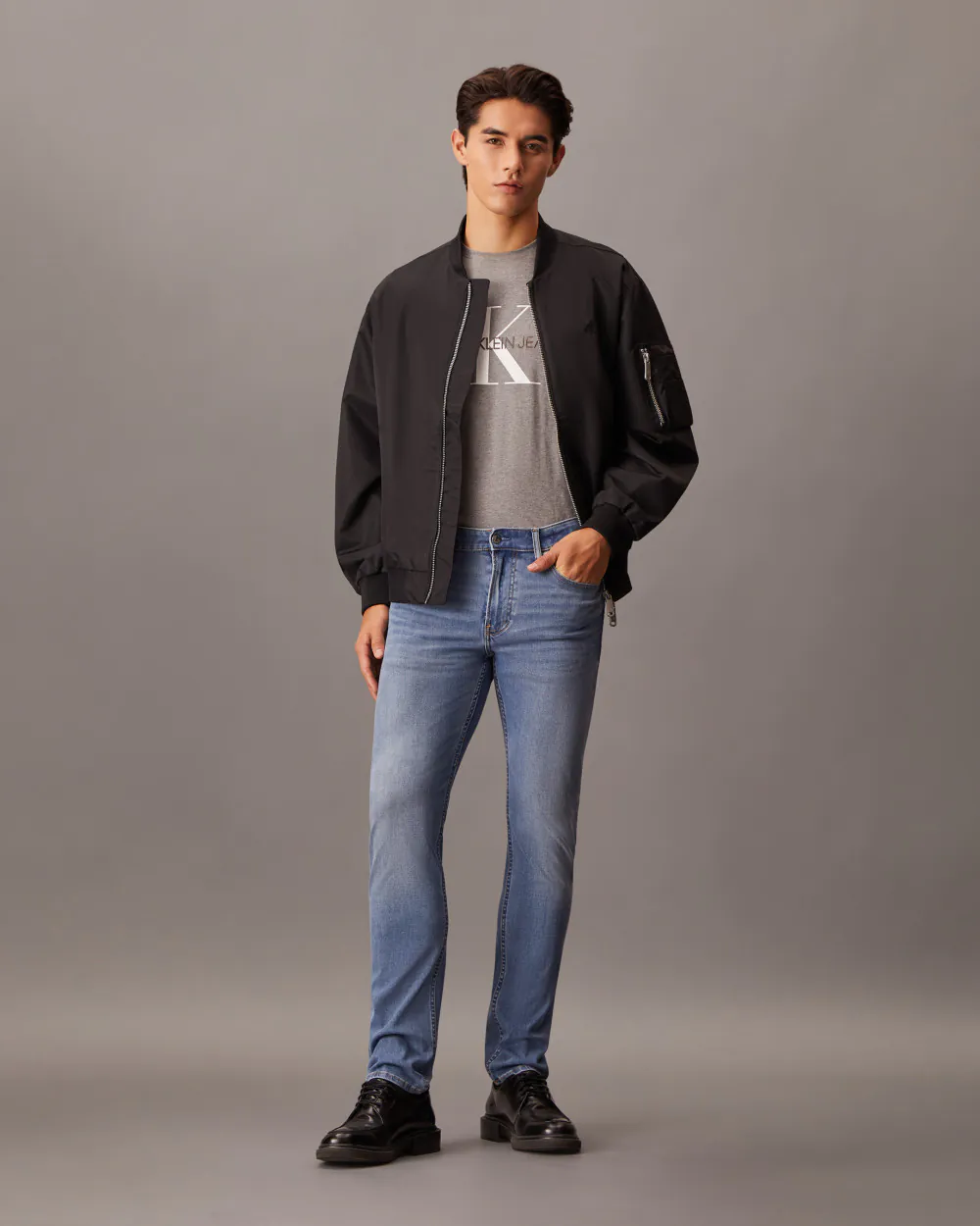 1. Bomber + Quần Jeans Slim Fit