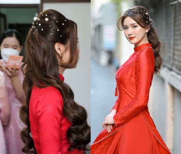 Một số kiểu tóc được ưa chuộng khi diện áo dài đỏ: