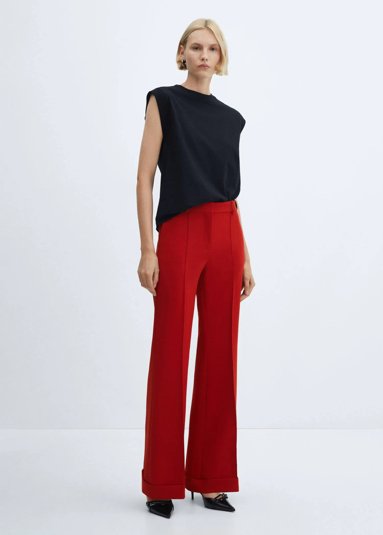 Áo đen có khả năng làm nền cực tốt cho những chiếc quần màu nổi: đỏ đô, cam cháy, xanh cobalt, xanh neon… Nếu bạn yêu thích sự phá cách, đây chính là cơ hội để thể hiện cá tính. Tuy nhiên, hãy giữ phần phụ kiện và giày dép thật tối giản để không bị rối mắt.