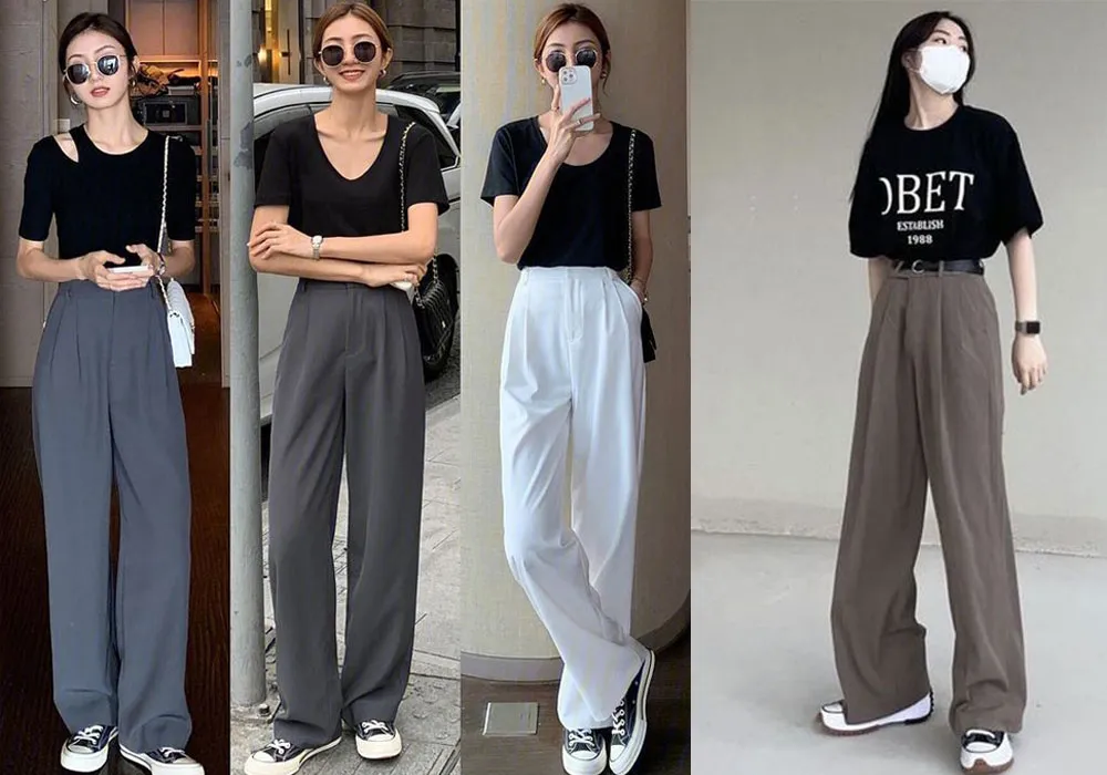 Bạn có thể chọn quần tây xám đi cùng áo sơ mi đen cho outfit công sở, hoặc áo phông đen + quần jogger xám cho buổi cà phê cuối tuần. Dễ mặc mà vẫn “chất”.