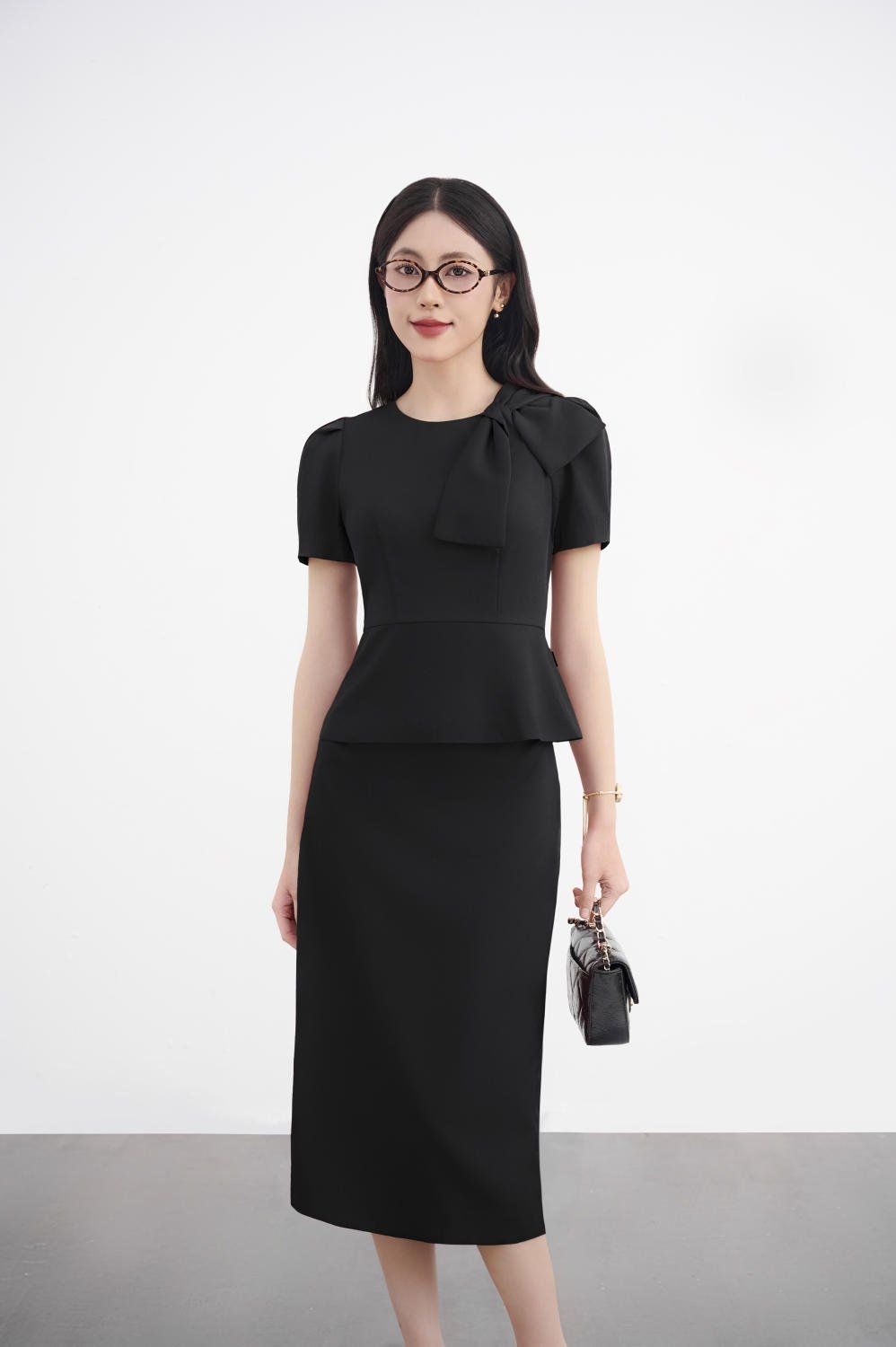 Chân váy bút chì ôm sát làm nổi bật đường cong cơ thể, đồng thời tạo độ tương phản hoàn hảo với phần tà xòe nhẹ nhàng của áo peplum. Kiểu phối này đặc biệt phù hợp trong những dịp họp hành, thuyết trình hoặc các sự kiện đòi hỏi vẻ ngoài tự tin.
