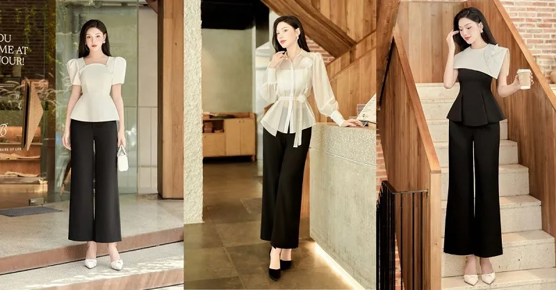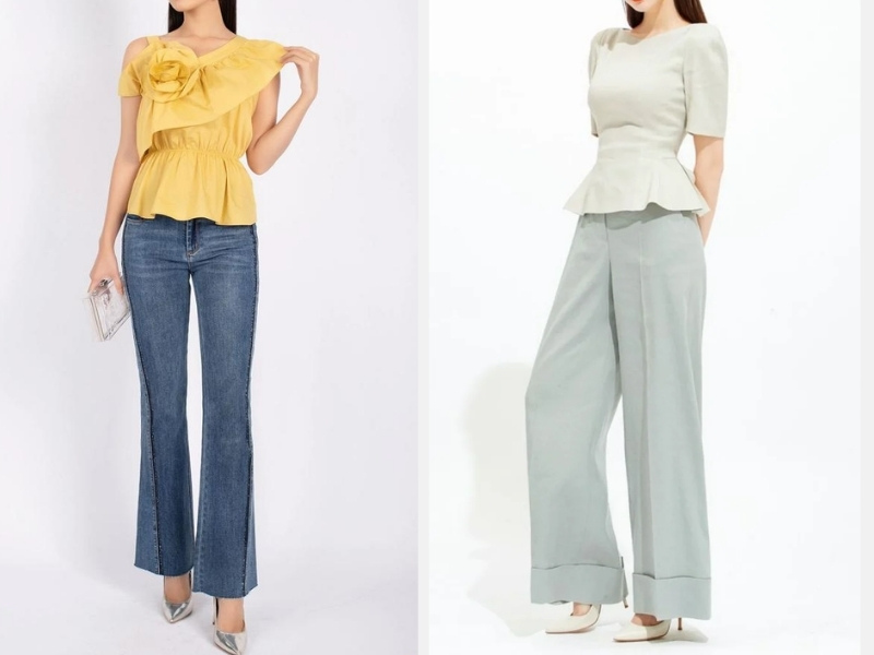 - 3.3 Áo peplum + Quần culottes hoặc ống rộng