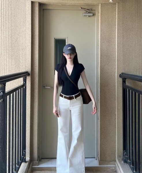 Outfit đơn giản nhưng tinh tế, phù hợp cho những ngày cần sự thoải mái mà vẫn thanh lịch.