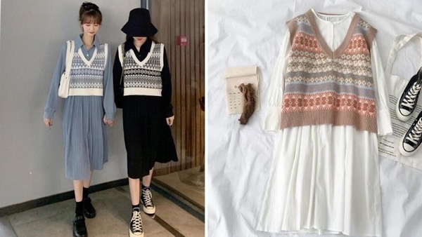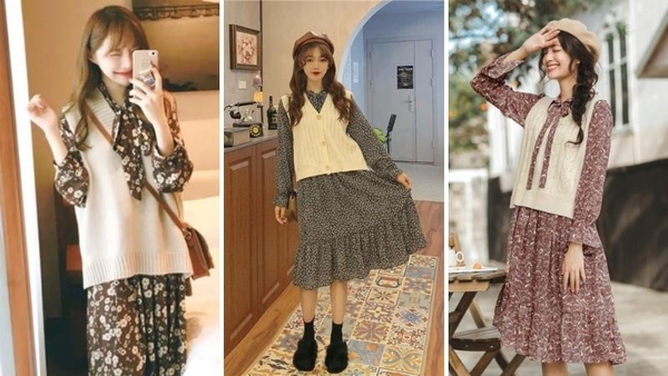 Nếu yêu thích phong cách vintage, hãy thử phối áo gile len với váy liền hoa nhí. Set đồ này mang đến vẻ ngoài nhẹ nhàng, nữ tính, rất phù hợp cho những buổi dạo phố hoặc đi cà phê.