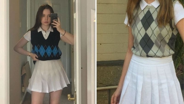 Chân váy tennis ngắn phối cùng áo gile len oversized mang đến phong cách preppy đặc trưng của Hàn Quốc. Bạn có thể mặc áo sơ mi hoặc áo thun ngắn tay bên trong để tăng sự trẻ trung.