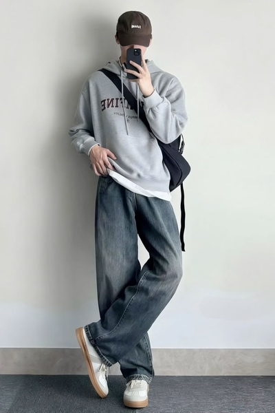 Áo hoodie mang đến vẻ ngoài trẻ trung và thoải mái. Phối đồ với quần ống rộng nam và áo hoodie là lựa chọn lý tưởng cho những ngày thời tiết mát mẻ. Nên ưu tiên hoodie trơn màu để tổng thể không bị rối mắt. Kết hợp thêm túi đeo chéo da hoặc ví da tối giản sẽ tăng tính thời trang.
