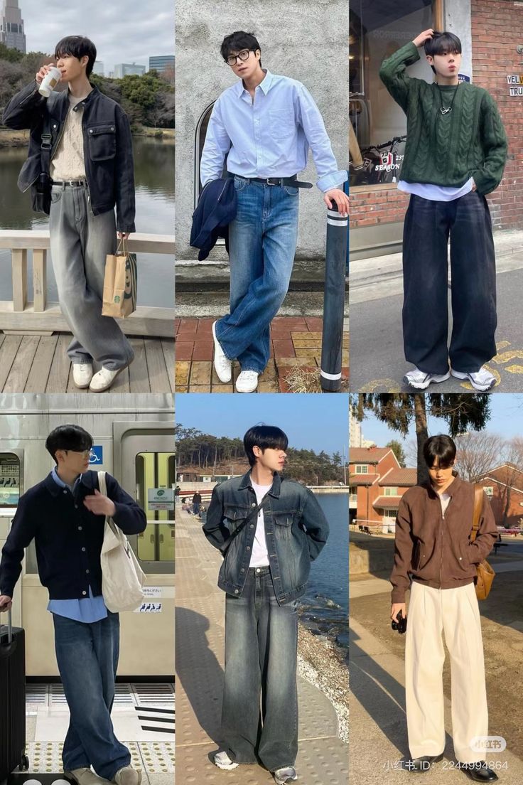 Xanh Denim + Trắng/Xám + Đỏ/Vàng (điểm nhấn): Tạo sự năng động, cá tính. Có thể là áo phông trắng, quần jean xanh và một đôi giày sneaker màu đỏ.