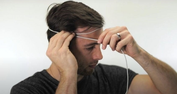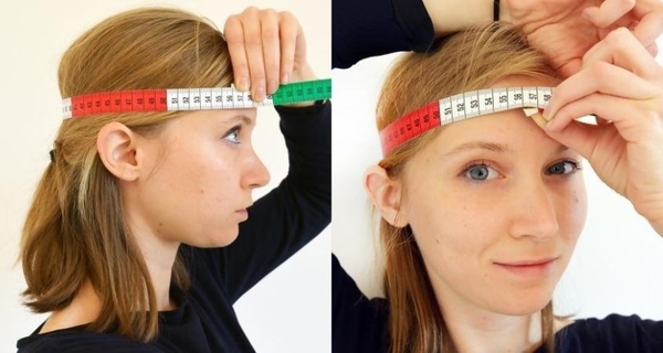Quấn dây quanh đầu: Tương tự như cách dùng thước dây, quấn sợi dây quanh đầu, cách lông mày 2-3 cm, đảm bảo dây nằm ngang giữa trán và gáy.