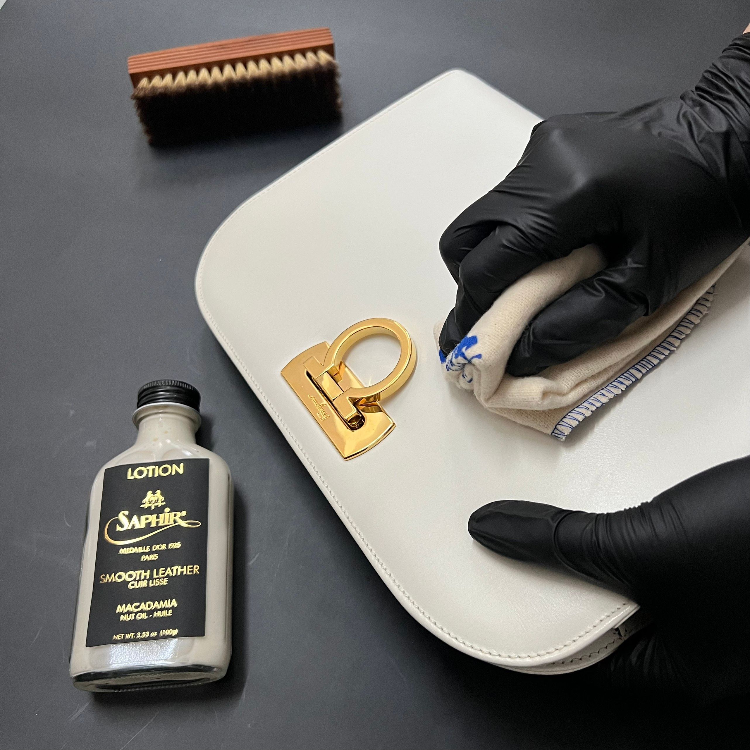 - Thoa đều dầu lên toàn bộ bề mặt áo da theo chuyển động tròn nhẹ nhàng.