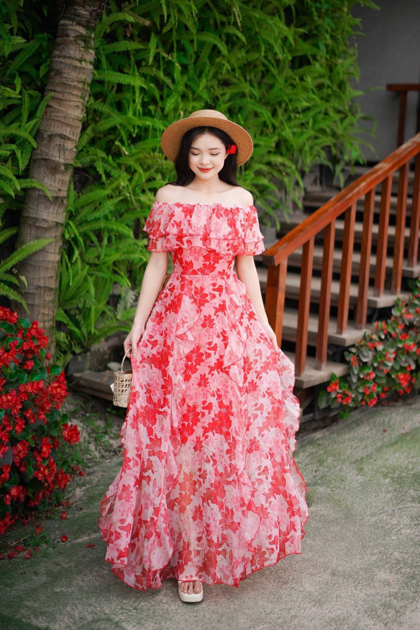 Lý tưởng cho mùa du lịch biển, mang lại vẻ bay bổng, phóng khoáng. Bạn có thể thêm mũ cói và túi xách mây tre đan để tăng “vibe” nghỉ dưỡng.