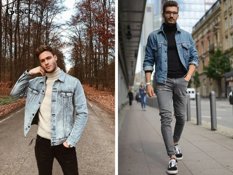 Khi muốn theo đuổi phong cách trẻ trung, bạn có thể phối áo len cổ lọ ôm sát cùng áo khoác jean sáng màu và quần jogger. Set đồ này giúp bạn vừa năng động lại vừa cá tính, thích hợp cho các buổi café, dạo phố hoặc đi học.