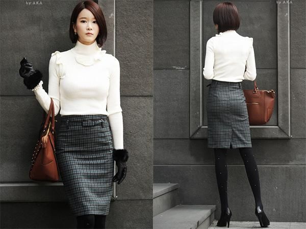 Đây là lựa chọn hoàn hảo cho những ai hướng đến sự quyến rũ tinh tế nơi công sở. Áo len cổ lọ mỏng vừa giữ ấm vừa tạo dáng gọn gàng, kết hợp cùng váy bút chì cạp cao giúp tôn lên đường cong và chiều cao.