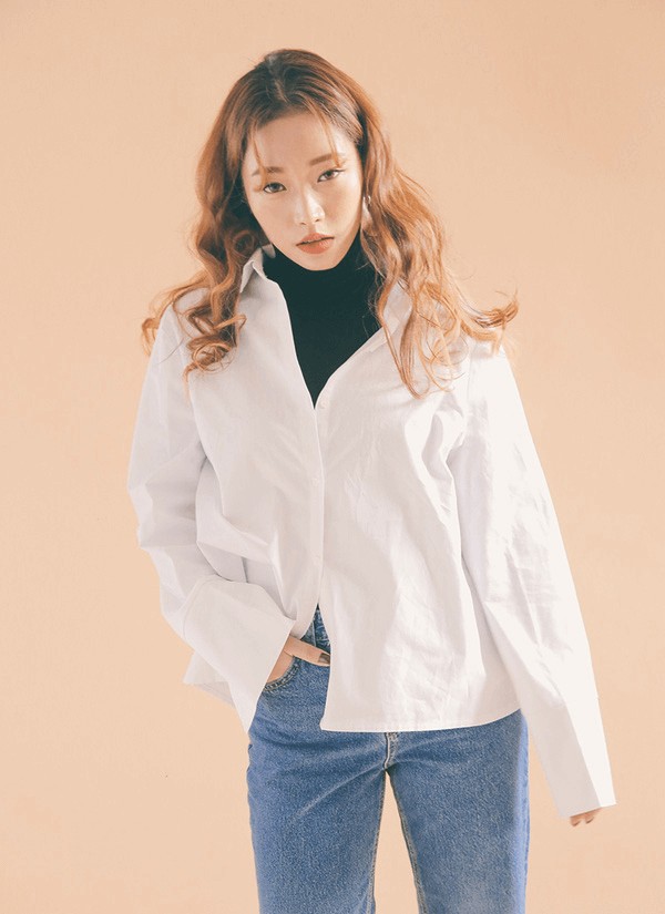 Một cách layer thông minh cho mùa lạnh: mặc áo sơ mi trắng hoặc kẻ sọc bên ngoài áo len cổ lọ ôm sát. Kiểu phối này giúp tạo chiều sâu cho trang phục, rất hợp với phong cách casual chic.