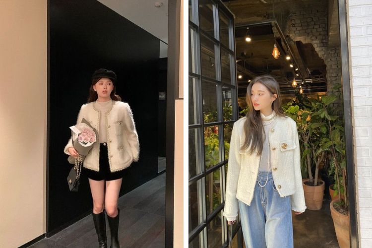 3.4 Áo len cổ lọ + Áo dạ tweed