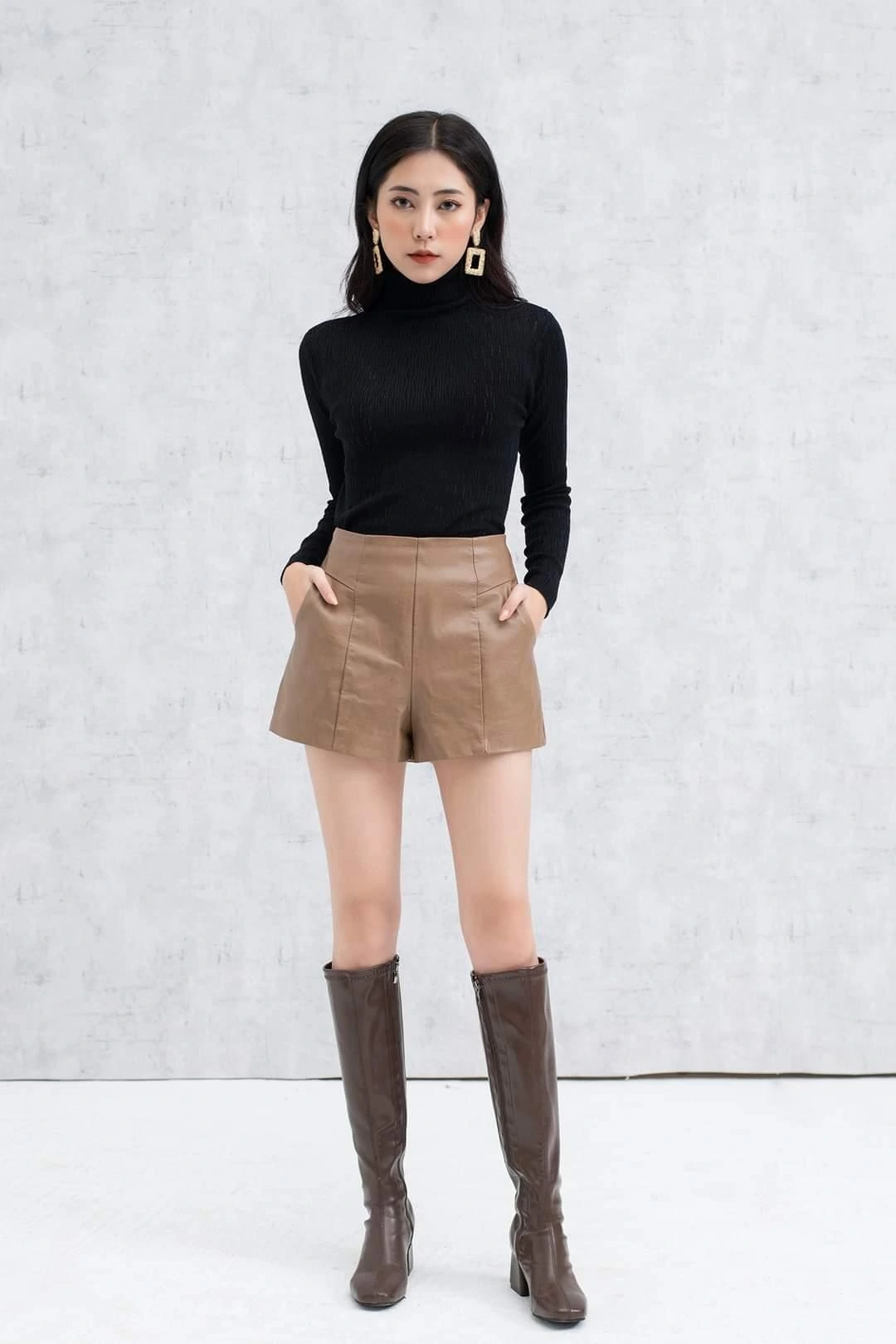 Một sự kết hợp thú vị giữa item mùa đông và mùa hè. Áo cổ lọ giữ ấm phần thân trên, trong khi quần short mang đến sự trẻ trung. Khoác thêm blazer oversize và đi cùng boots cổ ngắn sẽ giúp bạn nổi bật trong tiết trời giao mùa.