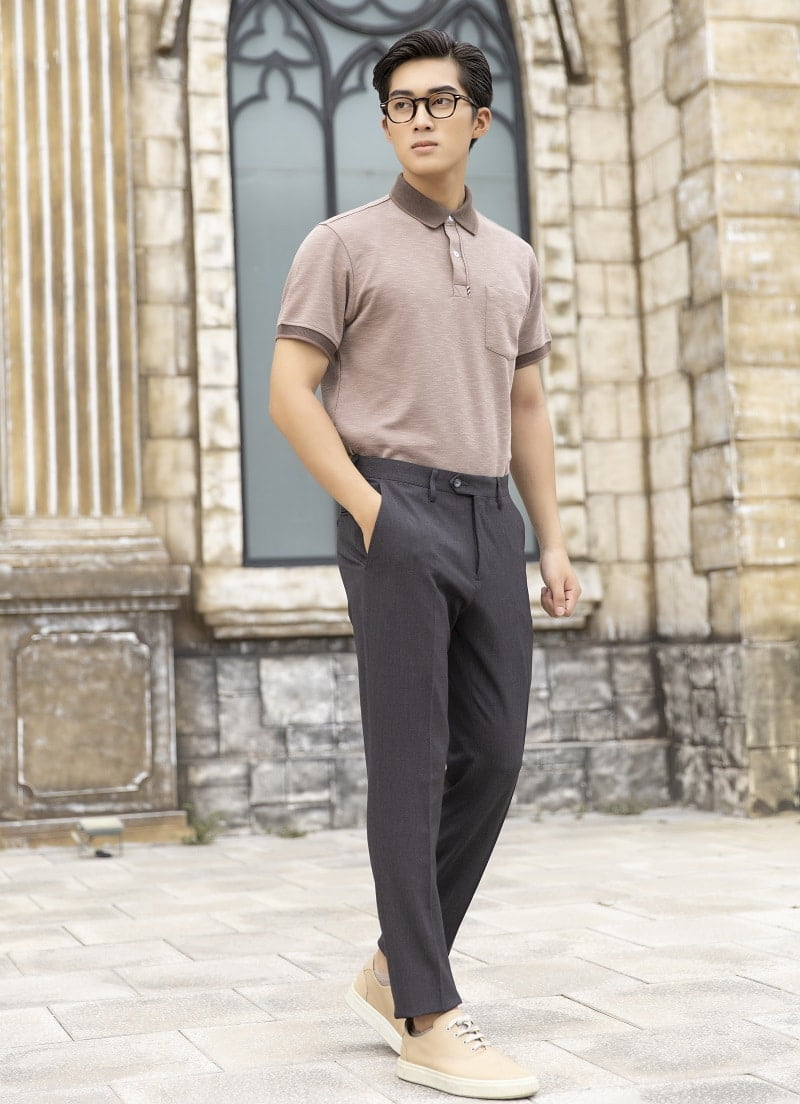 Cho những ngày cần sự chỉn chu, hãy phối polo với quần tây phom ôm nhẹ. Chọn màu quần như xám tro, nâu nhạt hay đen sẽ tôn lên độ sáng của áo polo. Kết hợp cùng giày lười da bóng và đồng hồ dây da – bạn đã sẵn sàng cho cuộc họp hay buổi hẹn trang trọng.