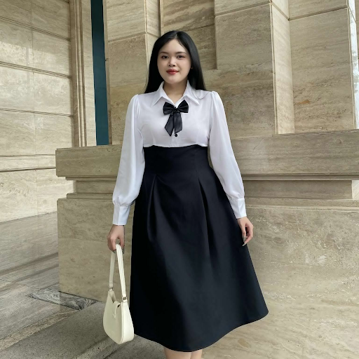 Kết hợp chân váy dài dáng suông hoặc chữ A với áo sơ mi trắng là công thức “kinh điển” cho môi trường công sở. Chọn áo sơ mi cotton mềm mại, sơ vin nhẹ để tạo cảm giác gọn gàng.