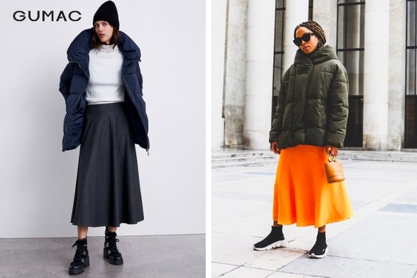Lưu ý khi phối đồ với chân váy xòe dài mùa đông