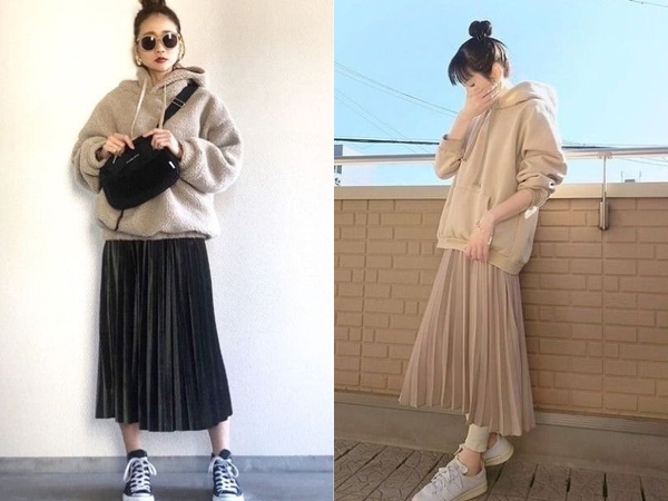 Q: Có thể mặc váy xòe dài với hoodie không?