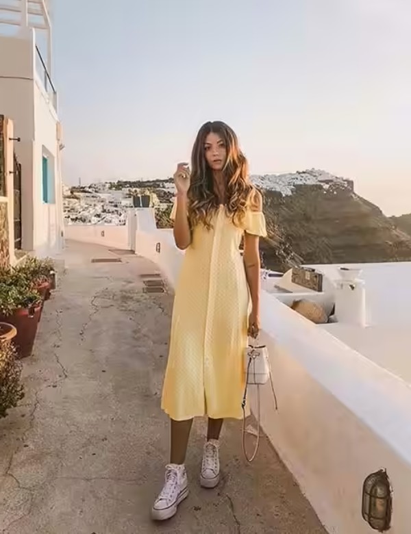 8. Phối đồ Converse cổ thấp và đầm maxi/tea-length – Bohemian pha thể thao