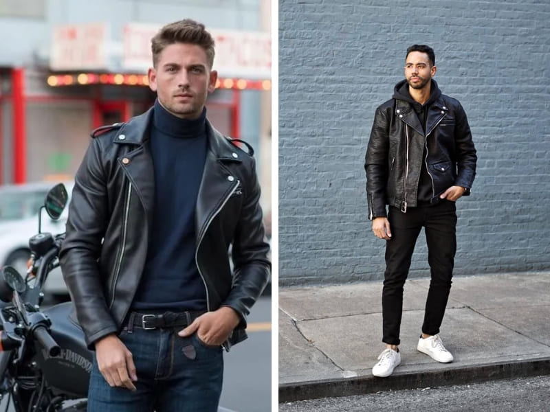 13. Sneaker + quần jeans đen + áo khoác da