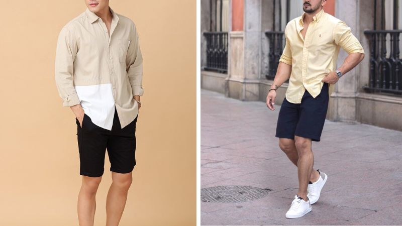 4. Sneaker + quần short kaki + áo sơ mi cộc tay
