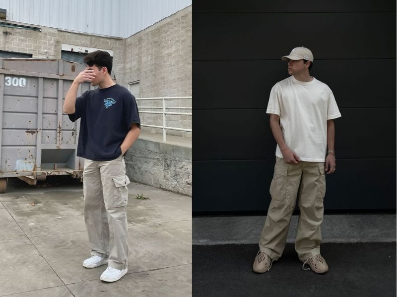 5. Sneaker + quần cargo + áo thun oversize