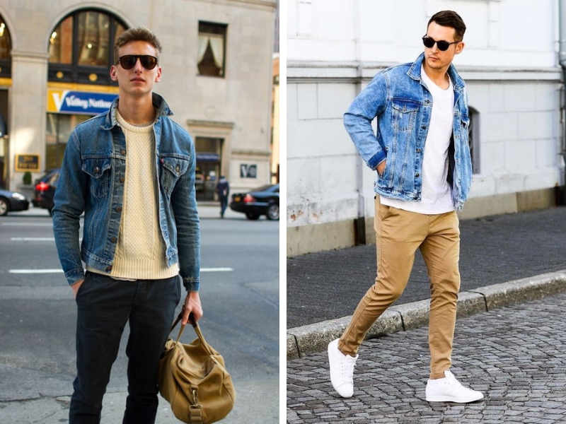9. Sneaker trắng + quần kaki + áo khoác denim